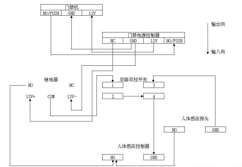 自動(dòng)門與門禁控制器的接線方法: